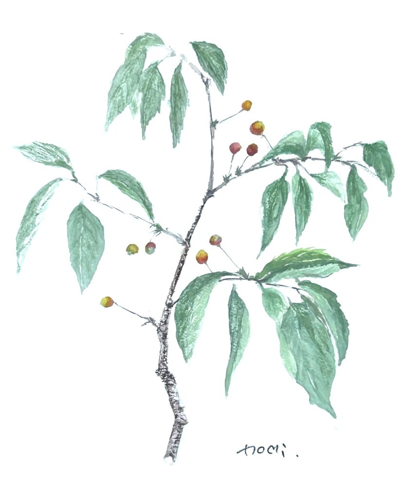 2026年4月山桜の実です。山桜の花が散ったあとに小さな赤い実です、日に日に大きくなってきます、次世代に向かう力を感じます。